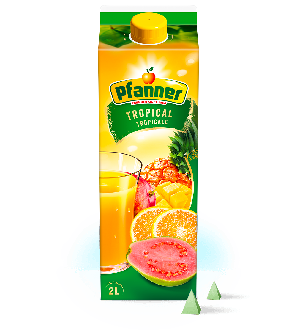 Acqua, succo di più frutti da concentrato (mela, arancia, pera, ananas, uva, maracuja, kiwi), zucchero, purea di pesca, purea di albicocca, purea di banana da concentrato, purea di guava, purea di mango da concentrato, acidificante acido citrico, vitamine (C, niacina, acido pantotenico, E, B6, tiammina, riboflavina, biotina), beta-carotene.